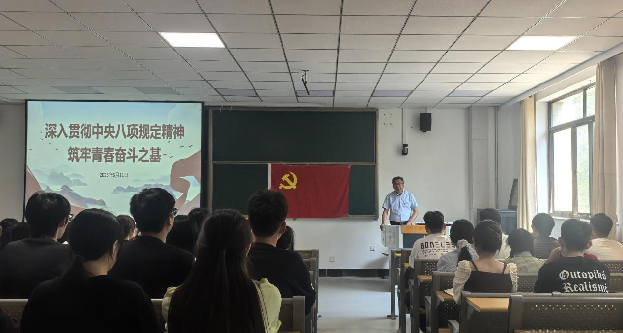 6月11日下午,易游 (中国版权)官方网站党委书记程毅为学院全体学生党员讲授了主题为“深入贯彻中央八项规定精神,筑牢青春奋斗之基”的专题党课。学院全体辅导员参加,这也是2025届毕业生党员在校的最后一次党课。