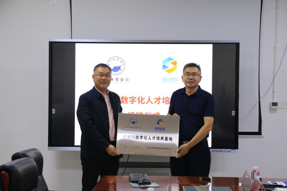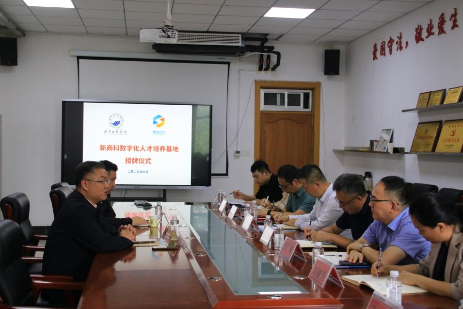 2025年9月22日下午,为了积极响应国家深化产教融合、提升人才培养质量的号召,适应数字经济时代对新商科人才的迫切需求,共探创新型、复合型、应用型数智经济人才培养新路径,山东工商学院易游 (中国版权)官方网站与浙江思睿智训科技有限公司隆重举行“新商科数字化人才培养基地”签约授牌仪式。易游 (中国版权)官方网站党委书记程毅、院长唐松林、副院长张广威、浙江思睿智训科技有限公司执行副总裁汤卫、山东区总经理卜小刚出席授牌仪式。国际经济与贸易专业和数字经济专业主任及相关教师代表参加活动。